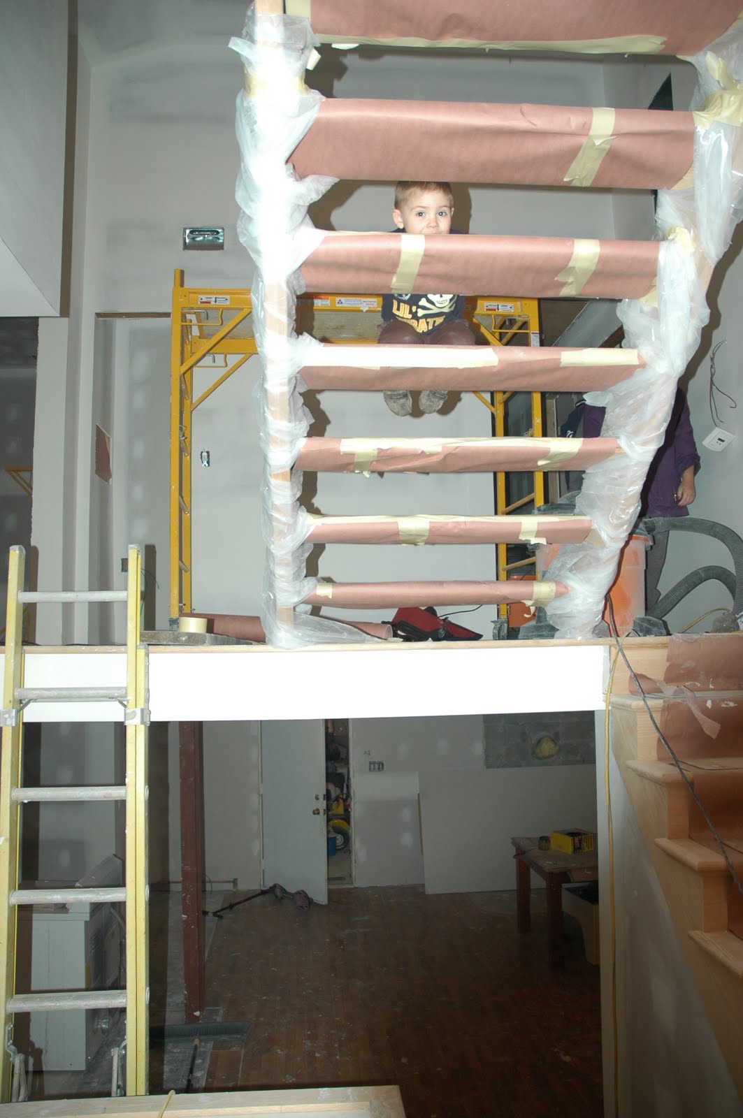 We've been climbing up a ladder for months to get to the master bedroom.  We had told the kids and their friends that we did it on purpose!  We advised them that when Zan and I went up to bed, we would pull the ladder up with us so no one  can bother us.  The idea sounded better each time I said it, I was starting to believe I had the perfect excape....
